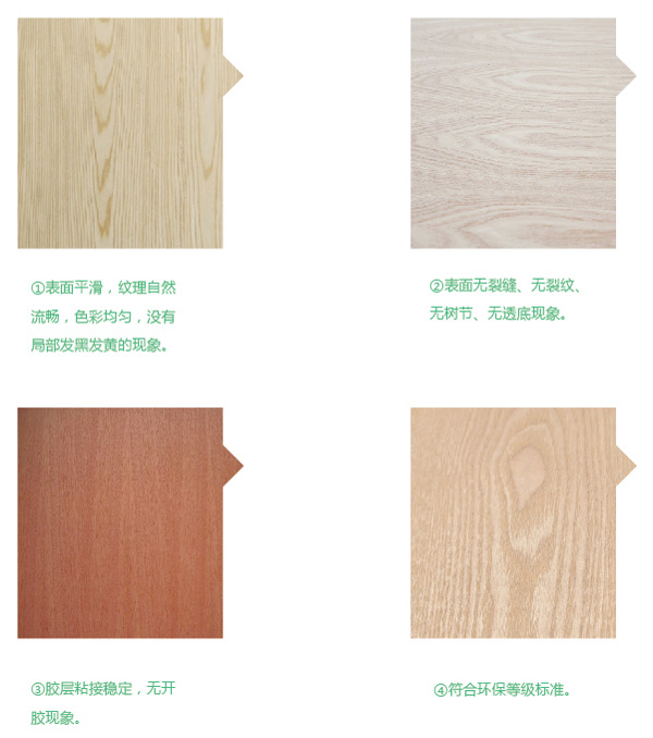 飾面板是普通膠合板上覆貼一層名貴樹種木皮而成,廣泛用于裝修的表面裝飾及家俱。伴隨珍稀樹種資源的日益枯竭,為保護有限資源,發達國家已成功開發出裝飾組合單板(科技木),以代替名貴木皮生產貼面板,在花式,紋理上幾可亂真,又避免了天然木材的各種生長缺陷,深受市場歡迎,引起很大反響。 優質面板要求美觀大方,花紋(弦向)貼面板要求紋理清晰,木紋對稱,無明顯色差,無死節,無挖補,無砂傷,壓痕,無板面污漬,平整光滑;直紋(徑向)貼面板要求紋理平直,無明顯色差,無點狀節子。 常用貼面板,膠合強度0.5Mpa,浸漬剝離每邊 1/3,含水率6-14% 。
